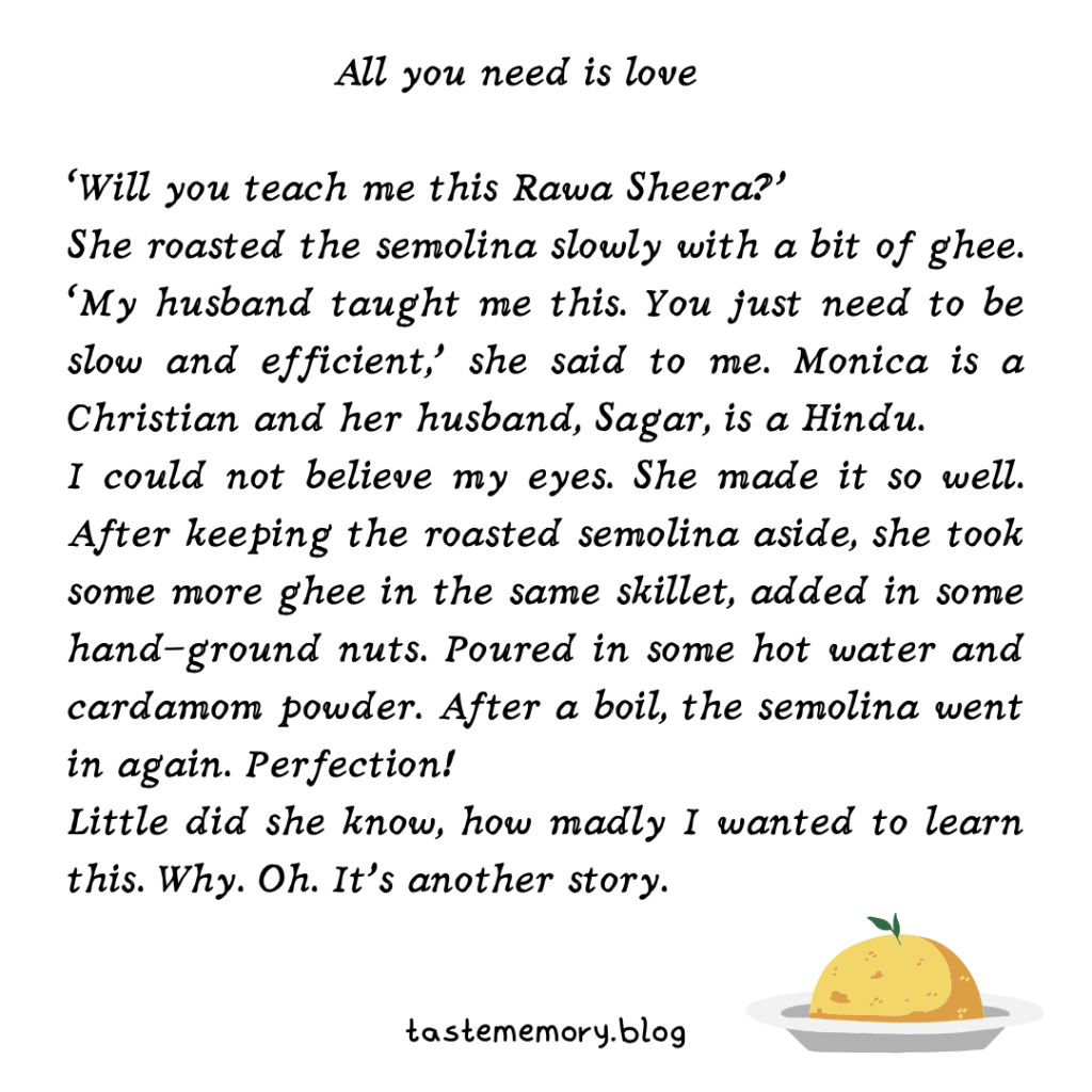 But, I don’t want to cook. Writing is easier than cooking. Those kitchen bottles bring no curiosity in me. I don’t want pasta. I just want to survive this journey of motherhood. And keep a bit of my mum’s recipes on my bedside table. And I shall be all right.