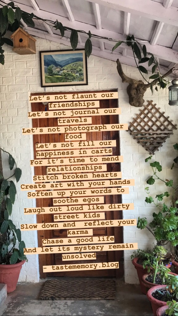 There is so much happening around, sometimes I lose track of how to be hopeful for the future. Till what extend can I protect my family from COVID? What impact will it have on us all in the coming months? When will a possible vaccine be available? Also, domestic tensions have started to crop up, and knowing the suicide cases around us through social media makes me all tensed. What does this time want to teach us? I don’t know. I only have questions in my mind as of now. Let’s keep gratitude till we sail through these times. And a wee bit of kindness towards each other will do no harm too.
