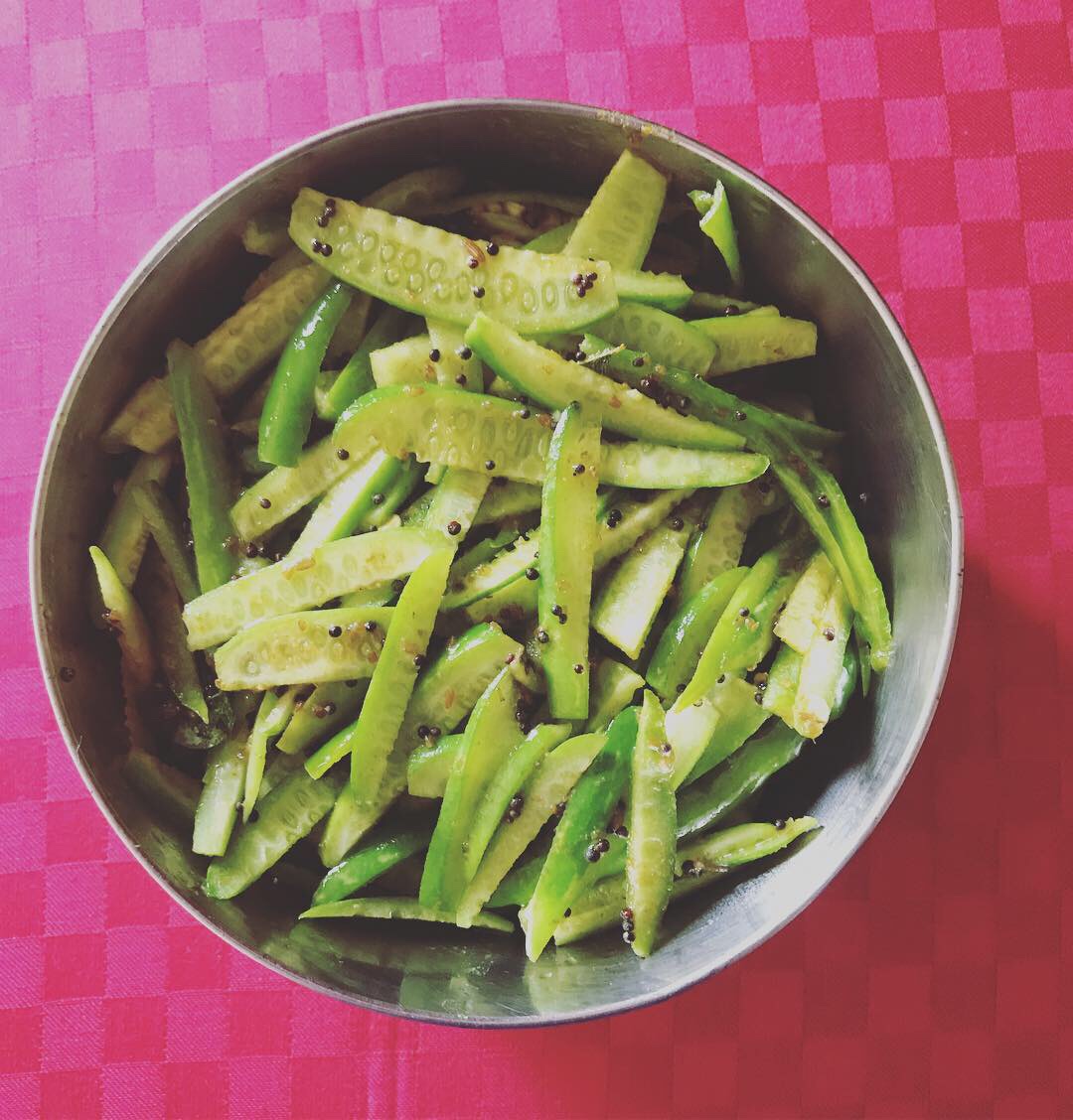 I could never get creative with this veggie that is Tindora (Ivy Gourd). But this quick recipe is just what I needed. Just like that quick cabbage Gujarati dish, Sambharo, this version of ivy gourd offers a fresh flavour and a crunchy texture to your Indian thali.