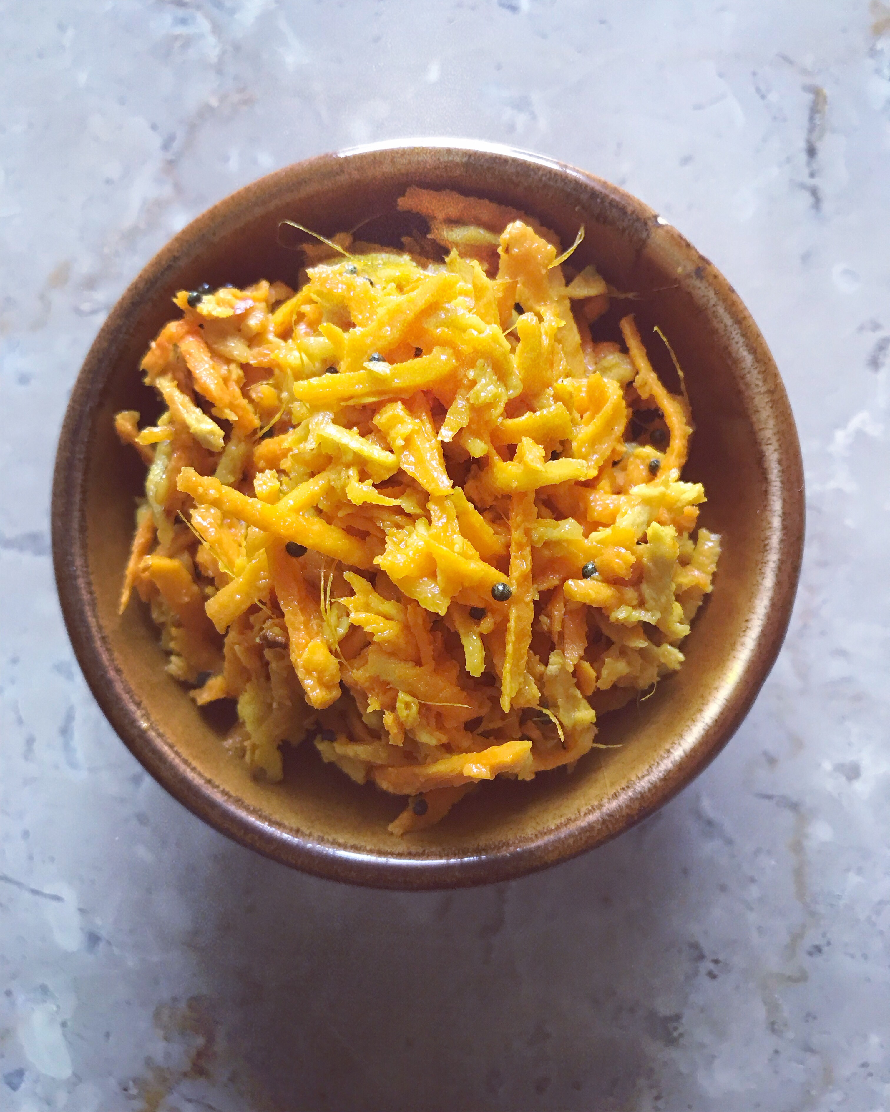 So, these days, I’ve gone back to cooking. It’s been a month, and I had to revisit my memory though; refer notes, call my mum, and so on, for even the basic recipes. There’s a new cook to help me in the kitchen, who comes to make dinner for us every day. I had gotten some veggies the other day, early in the morning. Turmeric was one of them, although I hardly knew what to make with it. Had known a few recipes but nothing that I could make properly. That’s why it was a big relief when the cook suggested a side-dish that could be made with turmeric.